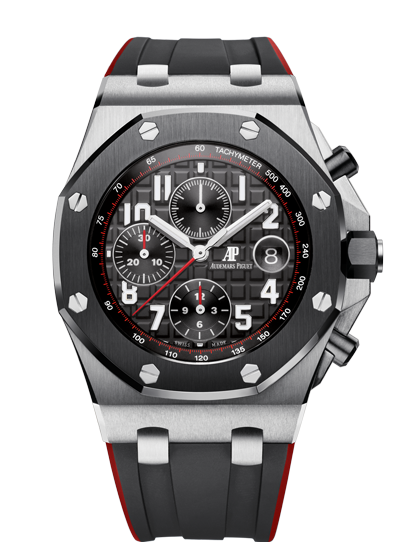• Black ceramic crown with a brushed stainless steel center & an engraved AP logo.